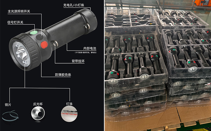 它主要應用於鐵路、化工(gōng)、航運及其它交通運輸業和林業或特種行(háng)業(yè),作為信號指(zhǐ)示、安全警示和(hé)工作照明(míng)使用。主光源正白光LED照明有強弱(ruò)兩檔供長(zhǎng)時間當班選用,紅、黃、綠三色信號(hào)光源可任選兩種配置為長明信號,信號可(kě)視距離1500米以上。