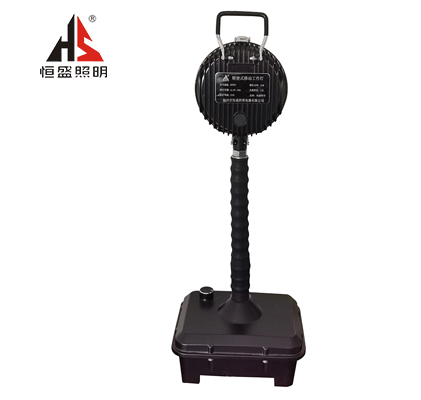 為方便可多角度任意調節照射(shè)方向,研發生產BJ665型號防爆移動工作燈:能固定在氣墊式升降(jiàng)架上1.15-1.75米(mǐ)高度範圍內任意升降,升降杆和電池箱為一體式結構,使用方便靈活,燈體底部裝有方便移動的輪子,可在平地上輕鬆移動燈體位置