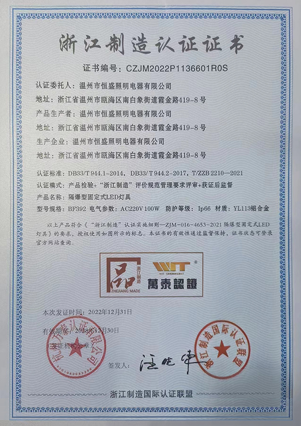 重磅(páng)喜訊 溫州(zhōu)91视频入口照明榮(róng)獲“品字標”浙江製造認證證(zhèng)書
