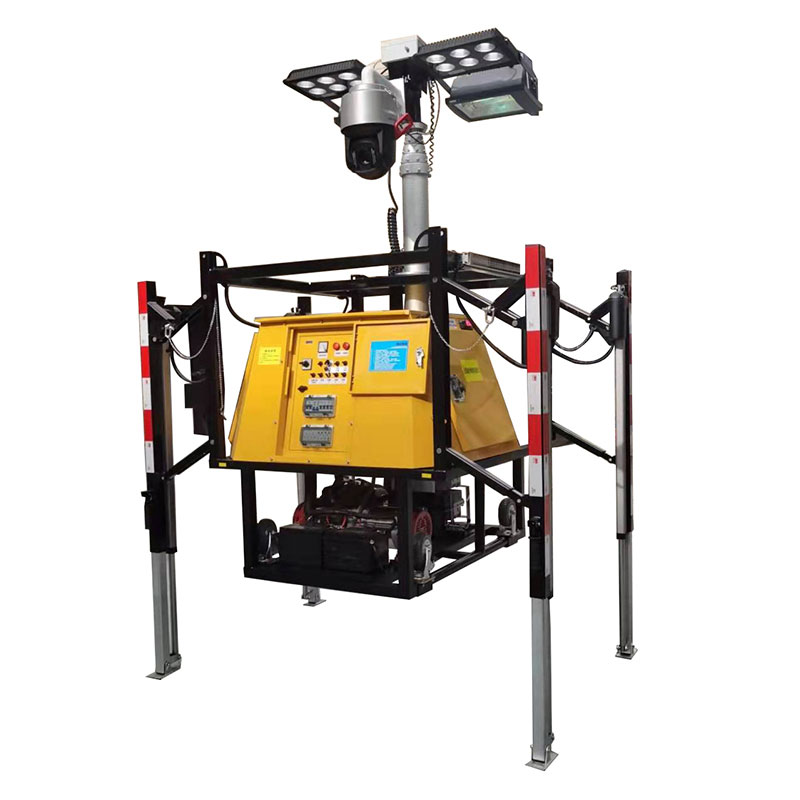 3. 燈杆采用6節氣動伸縮氣缸作為升降調節方式,最大升起高度為7米;左右(yòu)旋轉燈杆頭可360°調節光束照(zhào)射角度,燈光覆蓋(gài)半徑達(dá)到(dào)200米;具有(yǒu)限位裝置,當燈杆處於活(huó)動狀態(tài)時,支撐腳(jiǎo)自(zì)動停止動作,確保操作安全。